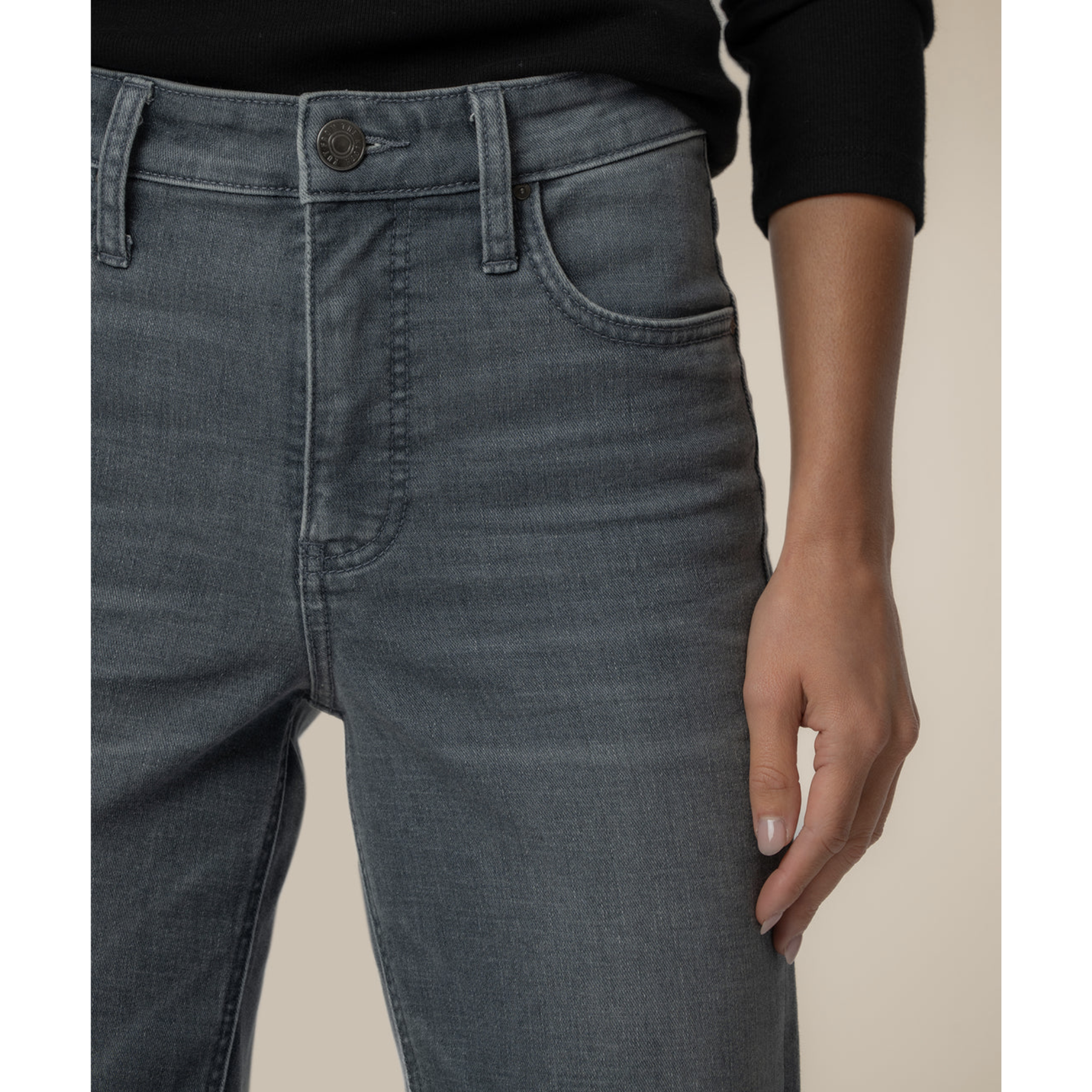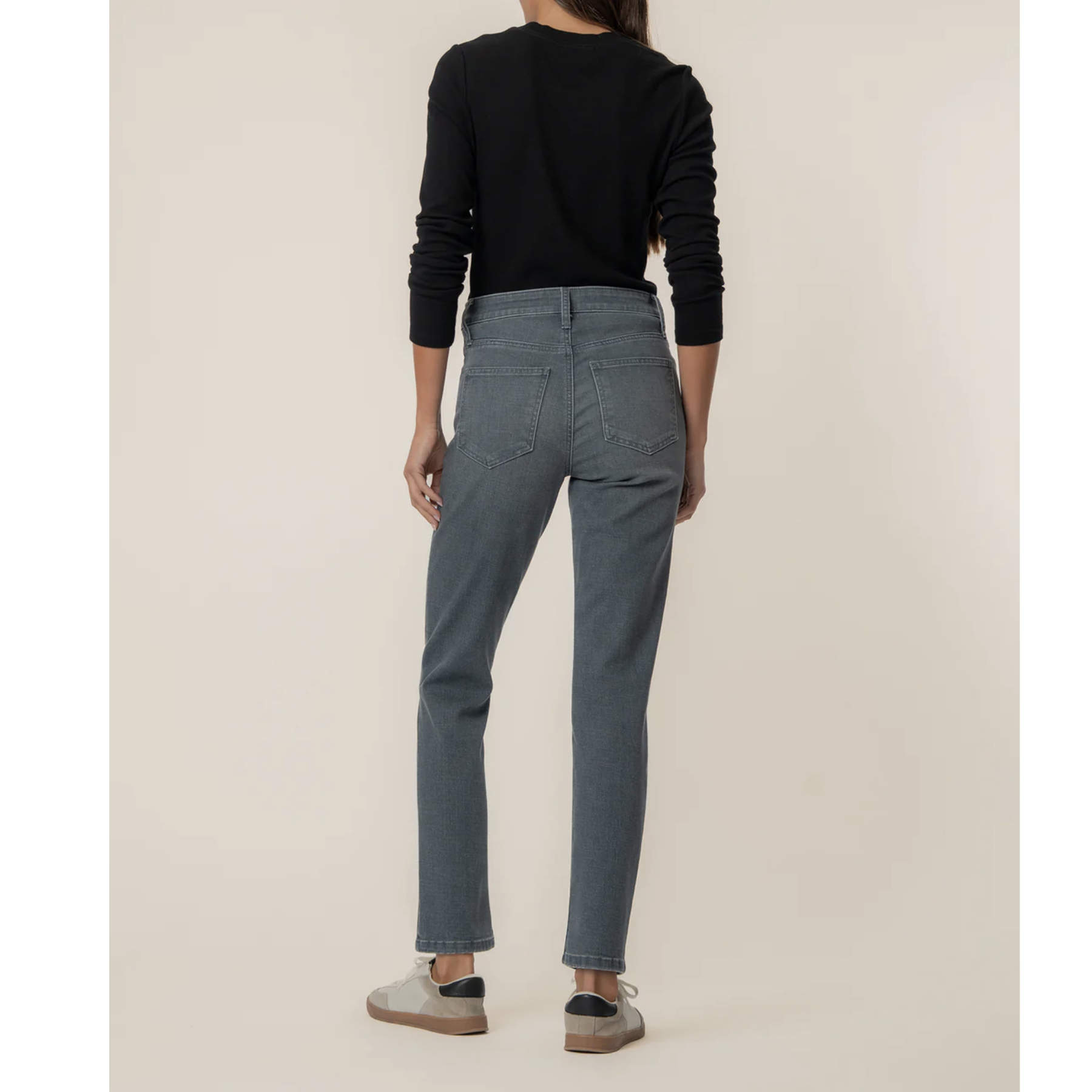 These high-rise mom jeans offer the perfect blend of comfort and style. Crafted in a versatile grey wash, they feature Fab Ab pockets for subtle shaping and a super stretchy feel that moves with you.