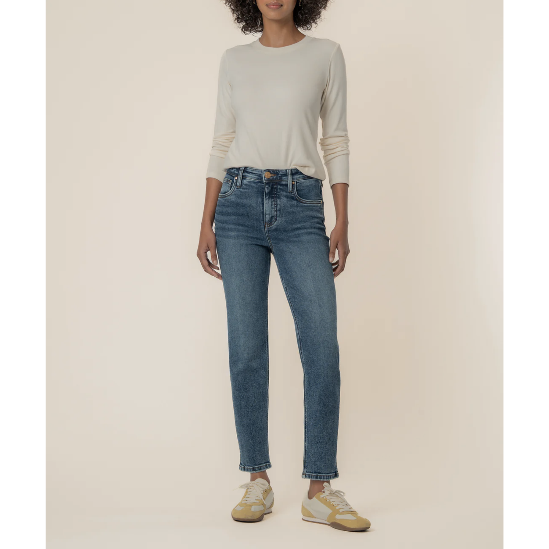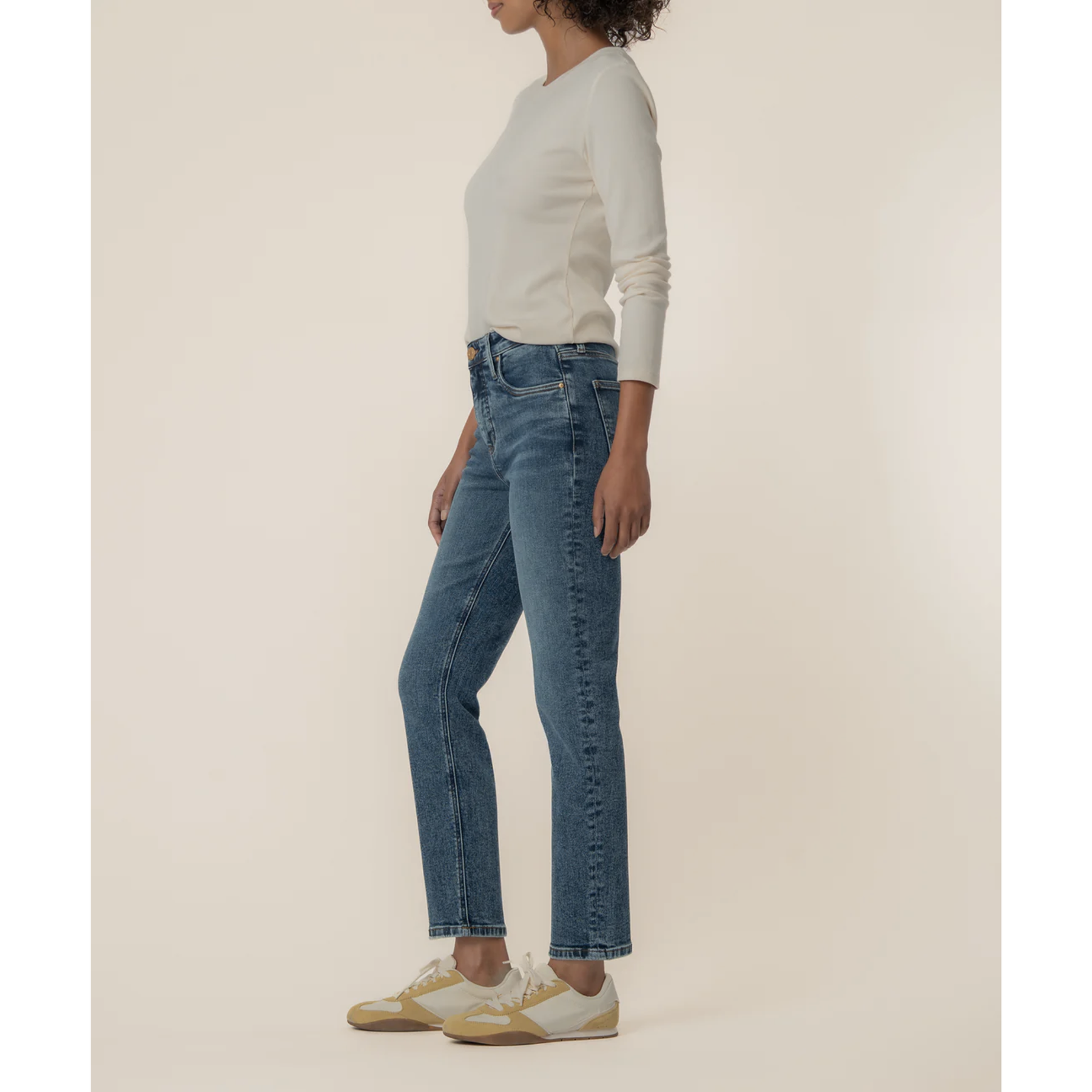 These high-rise mom jeans combine a timeless shape with all-day comfort, thanks to their softly structured stretch fabric that flexes as you move. Designed in a deep, dark wash, they strike the perfect balance between refined and relaxed. An easy essential you can style up or down for any occasion.
