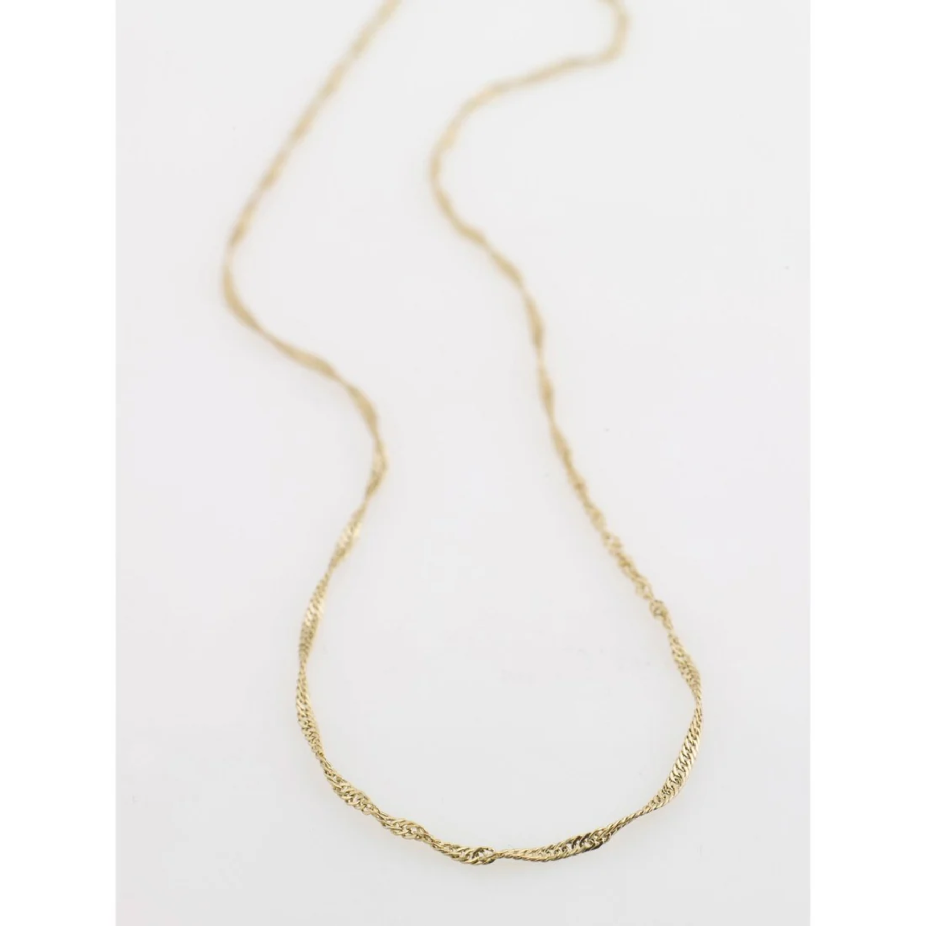 The Peri necklace is made up of a Singapore chain which is loosely twisted to create a delicate and elegant look. The simplicity of it makes it perfect for everyday and layers perfectly with your other favourite Pilgrim necklaces.