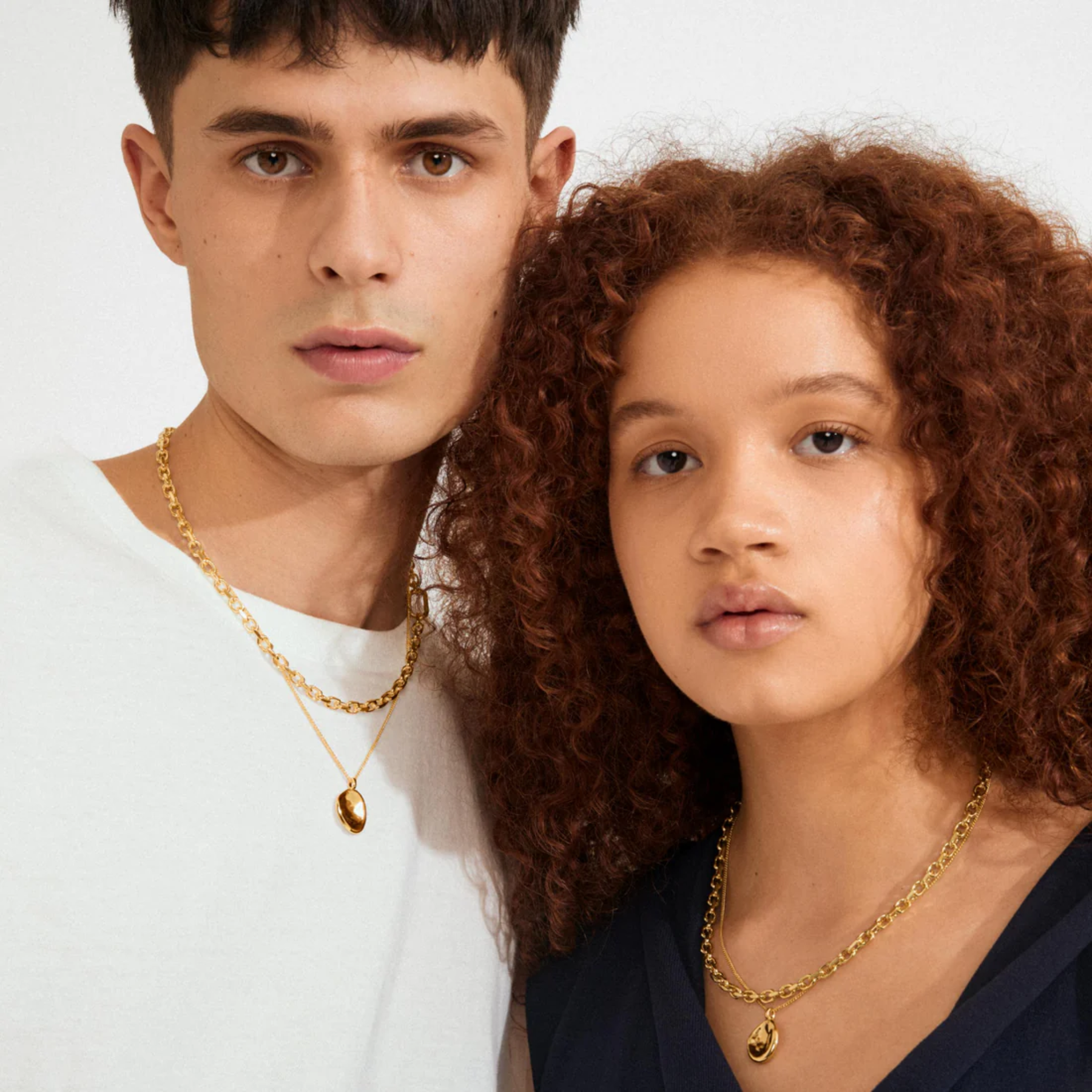 With the gold-plated or silver-plated SPARKLE necklaces from Pilgrim, you'll find your new fave accessories. A shiny cable chain with a decorative snap lock and a sleek coin chain with a reflective pendant that resembles a small fingerprint give your look a personal touch and create the perfect combo of street-ready vibes and dreamy elegance. Style solo for a minimalist look, or mix in a layered combo that pairs perfectly with this season's preppy pieces. The chains measure 40/45 cm, and the coin chain has an extra 9 cm extension for added flexibility. Made from 99% recycled materials with care for the planet.