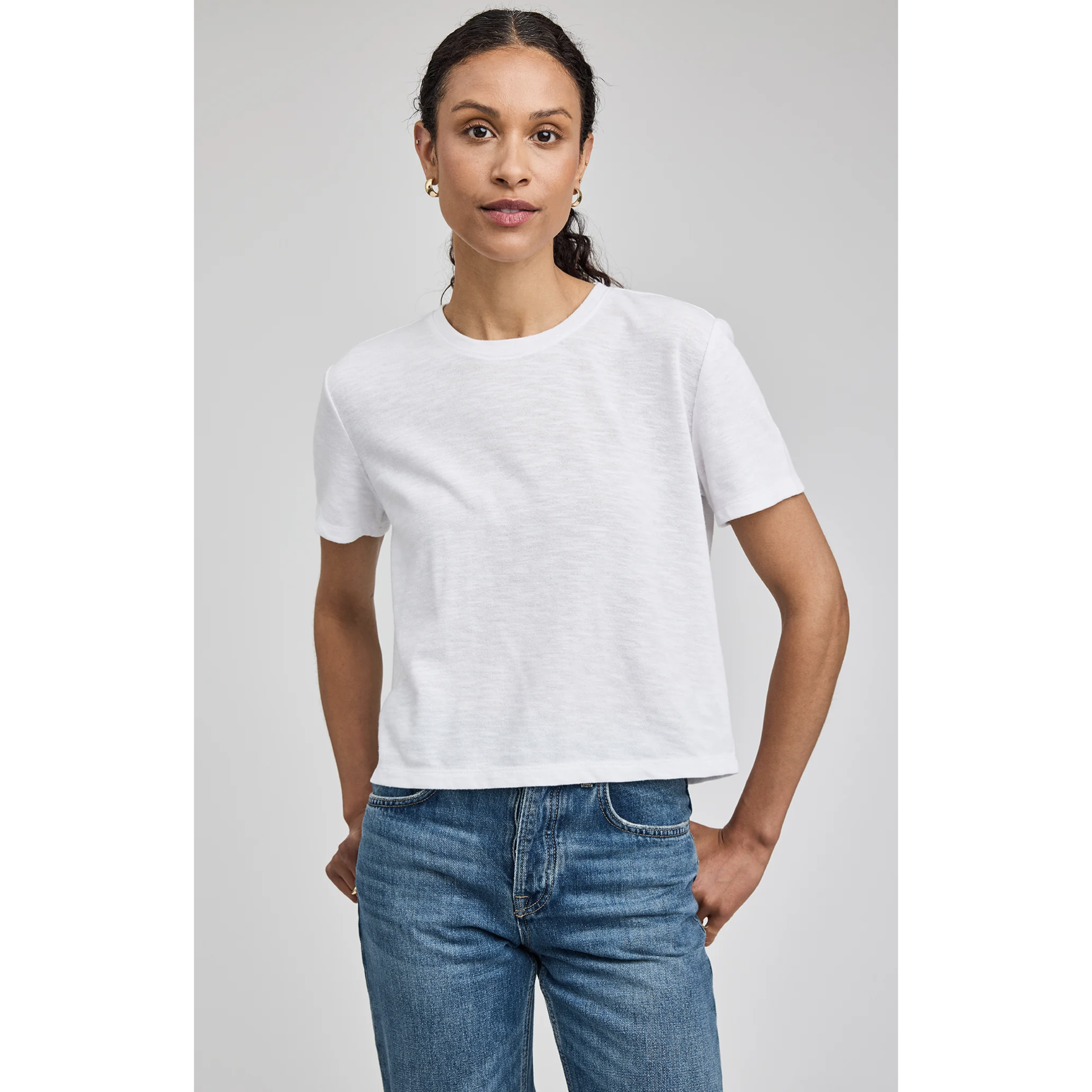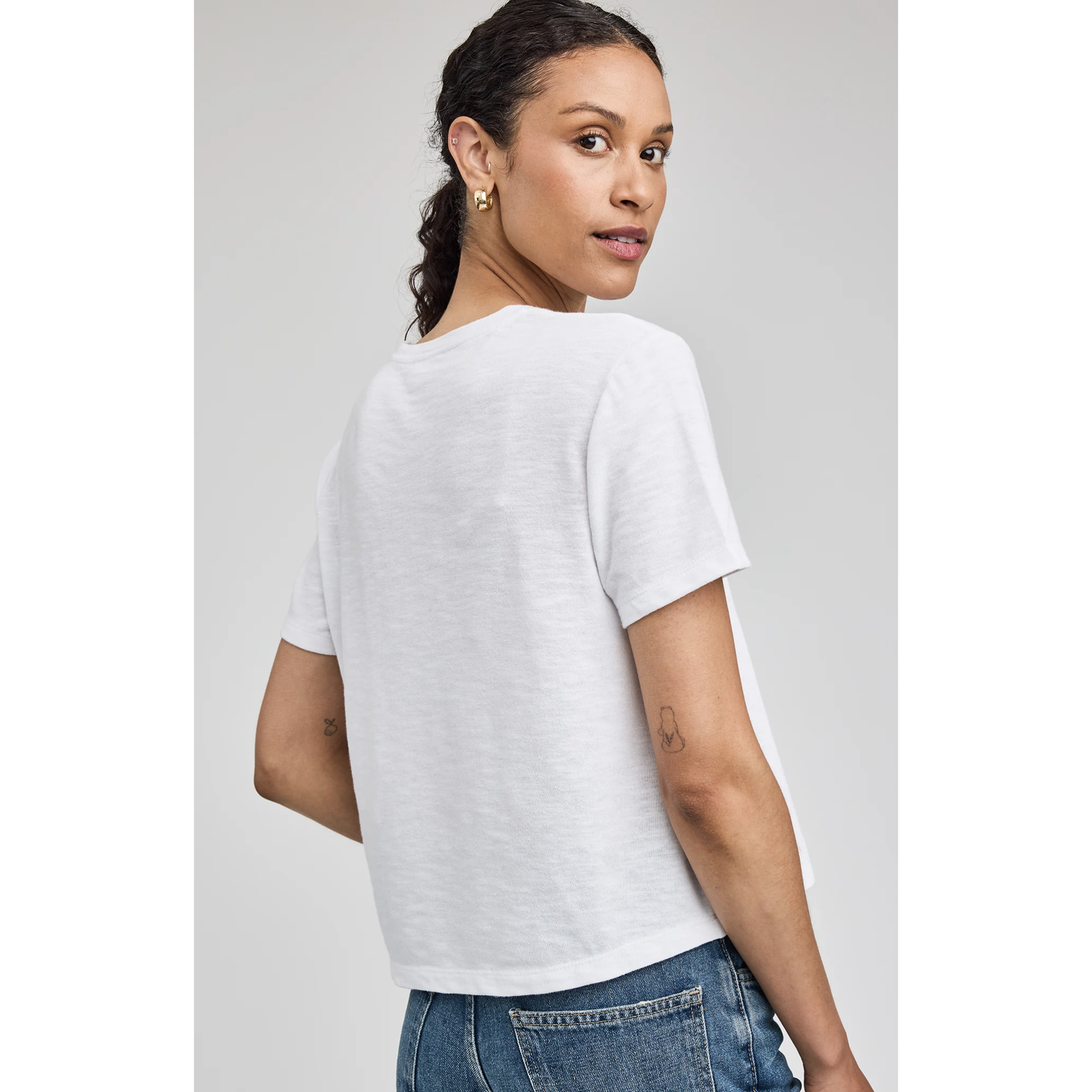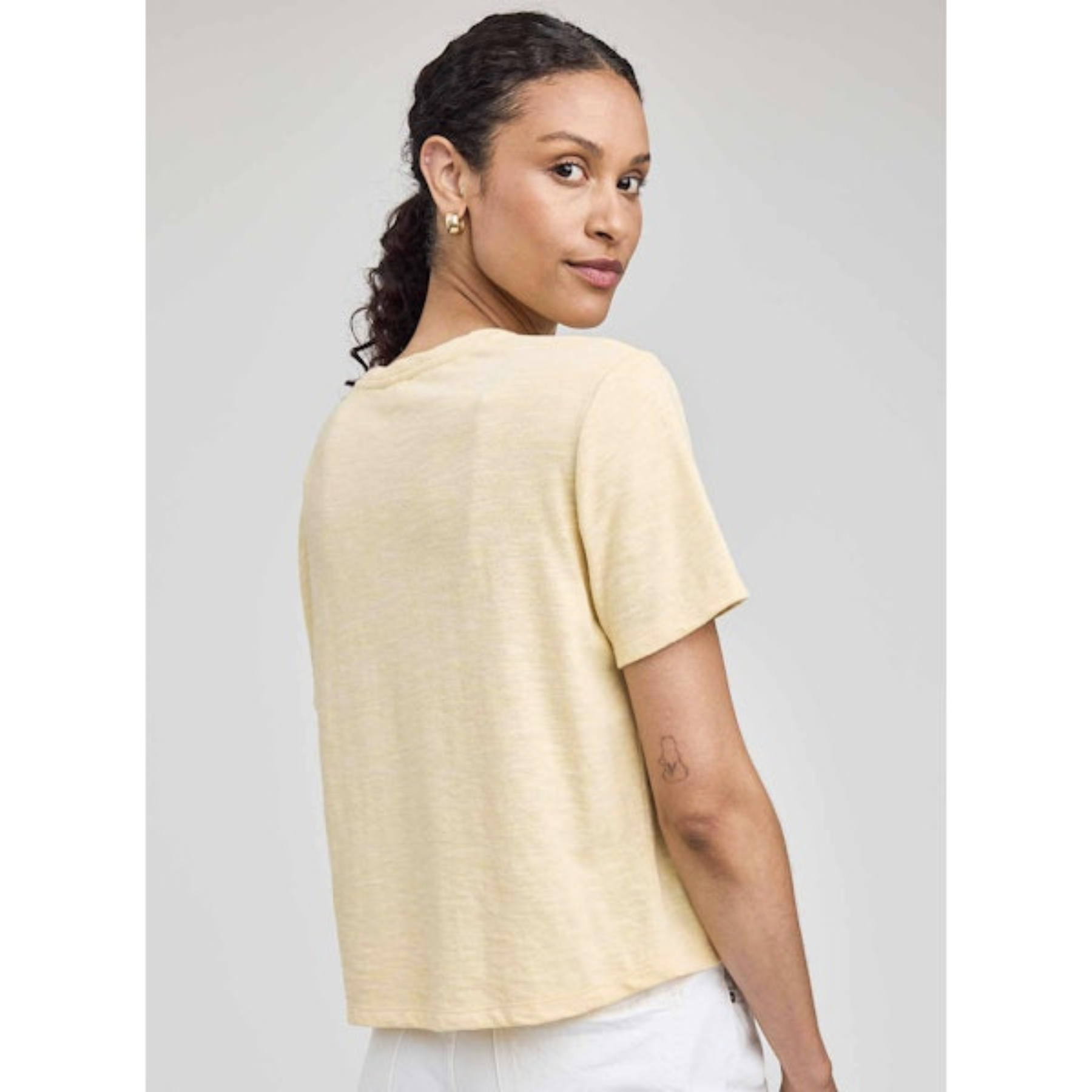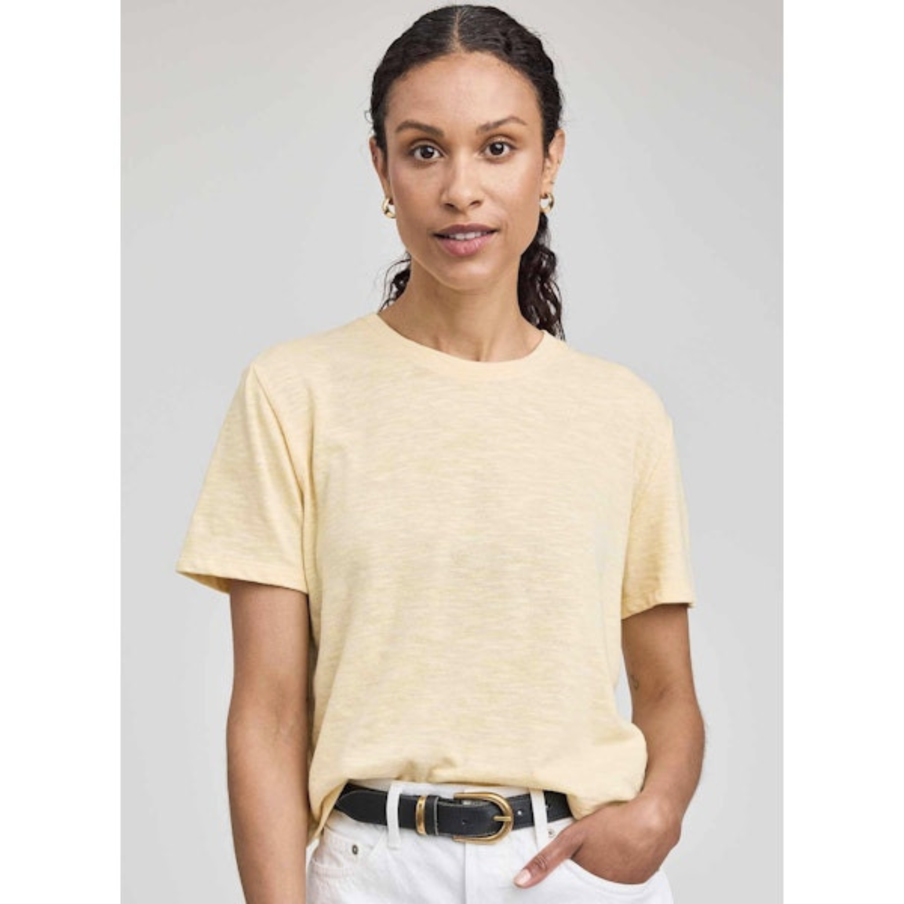 Available in cornsilk, white, and black, this versatile t-shirt is perfect for effortless styling. Wear it casually with denim or dress it up for a more polished look.