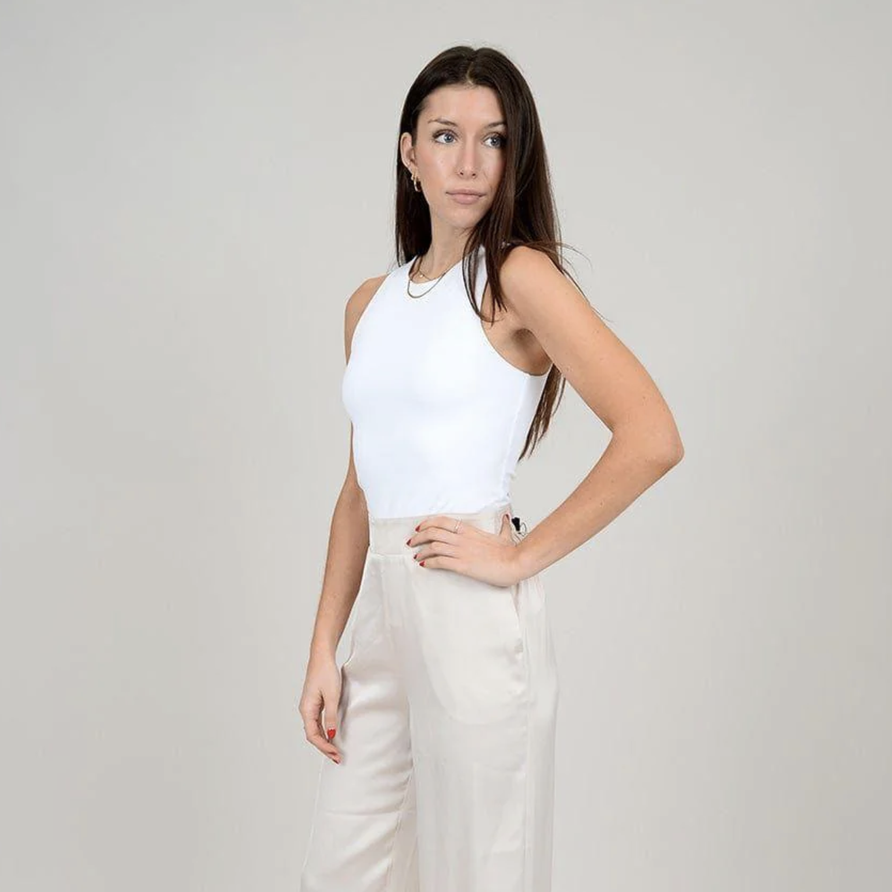 The RD Style Maria Second Skin Tank features a high crew neckline and double-layered construction for a smooth, structured fit. Made from signature Contour fabric, it offers a luxe, ultra-flattering feel with a soft, second-skin finish.